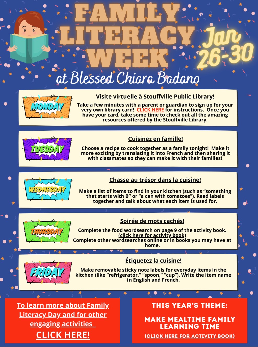 Blessed Chiara Badano CES will be celebrating and acknowledging Family Literacy Day – January 27, 2026